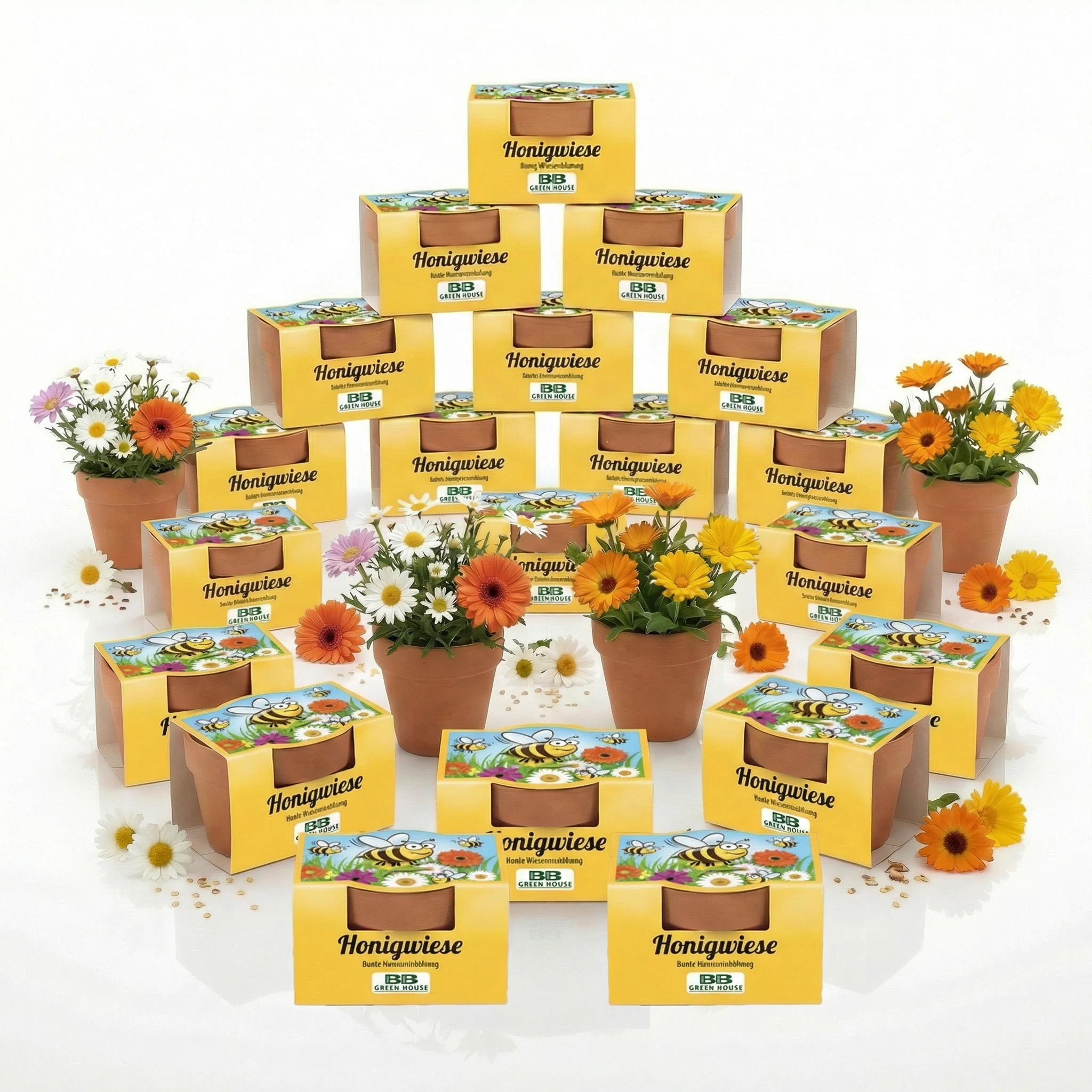 In jeder liebevoll gestalteten Geschenkbox steckt der Anfang einer bunten Blumenwiese. Eine vielfältige Blumensamenmischung wird in ein kleines Tontöpfchen gesät, mit Wasser versorgt – und schon beginnt ein stilles, wertvolles Wachstum. Ob am Balkon, auf der Fensterbank oder im Garten: Schon ein kleiner Platz reicht aus, um einen Beitrag für die Artenvielfalt zu leisten.