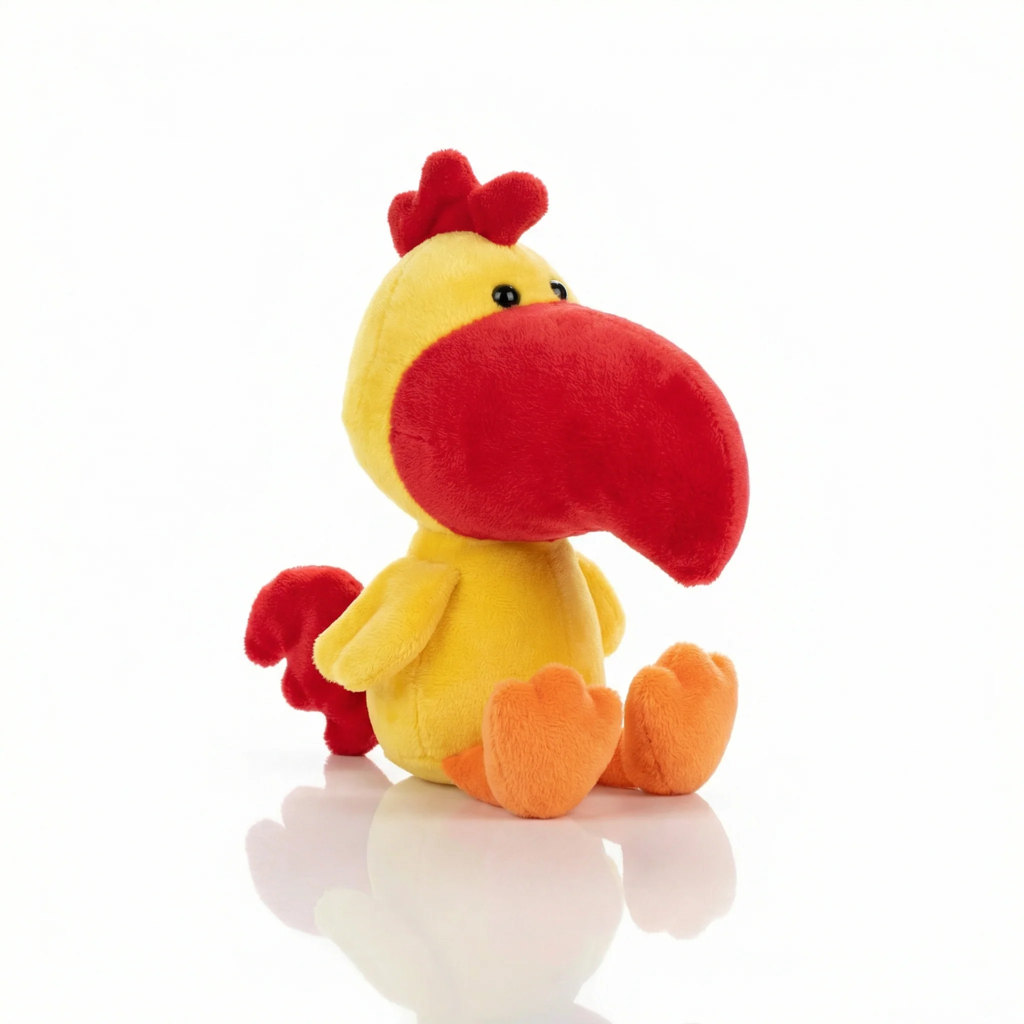 Der Big Head Hahn ist der heimliche Helfer des Osterhasen. Mit seinem knallroten Körper, dem gelben Schnabel und den süßen Knopfaugen ist er sofort zum Liebhaben. Kinder nehmen ihn in den Arm, spüren seinen weichen Kopf und den kleinen Körper, der sanft raschelt. Ab jetzt ist er ihr Osterbegleiter.